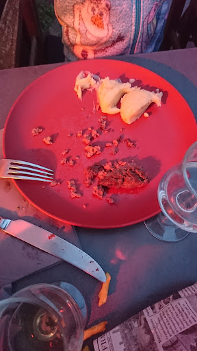 "Donc pour moi ce sera un 16 sur 20, parce que effectivement le plateau fromage-charcuterie en entrée c’était vraiment sympa. C’était assez bien, on a été très bien accueillis. Par contre, quand même, la porte… il aurait été mieux une porte en oscillo-battant, parce qu’il y a quand même pas mal de courant d’air, donc c’était assez chiant. Et par contre, au niveau des toilettes, c’était vraiment trop trop trop trop long. Il y a trop d’attente, trop de gens pour une seule chiotte. Là, vraiment, il faut que vous fassiez quelque chose pour les toilettes, là ça va pas du tout. Au niveau de l’escalope sauce crème, c’était bon, les frites étaient pas trop mal, même si c’est pas vraiment les meilleures frites du monde. L’oignon rouge, c’était délicieux par contre, dans la salade, c’était délicieux. Et la crêpe Nutella-banane, excellente, y’a rien à redire...