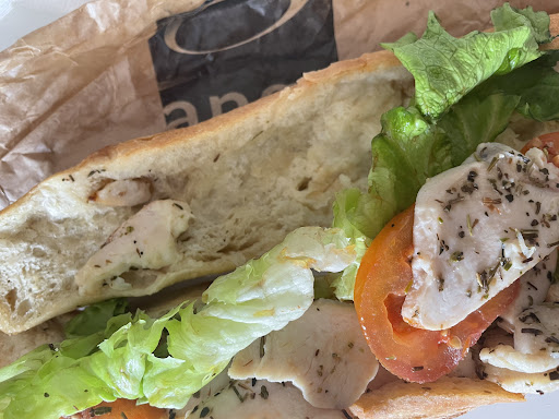 Travaillant Ă quelques mĂštres pendant quelque jours jâai dĂ©cidĂ© dâaller chercher un sandwich cruditĂ©s poulet. En effet, je suis dâaccord avec les commentaires trouvant que le sandwich est un peu sec et manque de sauce. Cependant aucune sauce nâĂ©tait indiquĂ©e dans la liste des ingrĂ©dients donc je nâai rien Ă redire đ
