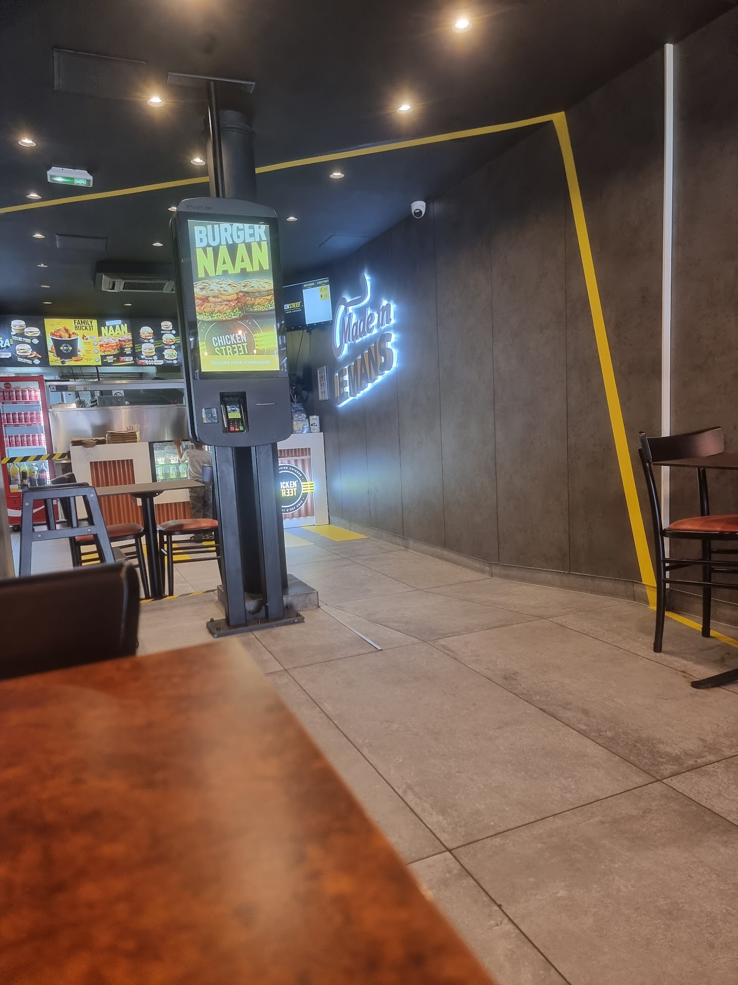 Étant venue hier soir pour prendre à emporter, il n'y avait presque personne, on a fait confiance on a pas vérifié à l'intérieur du sac, en voyant le jeune à la caisse regarder à l'intérieur qui a vérifié, et à fermé le sac devant nous... Arrivée à la maison 10min de trajet, j'avais commandé à la borne : 2 menus avec burger + frites + boisson et 1 menu Nan + frites + boisson et un sachet de 5 tenders, et au final nous avons eu les sandwich, aucunes frites mais 3 nuggets et 5 tenders ... Niveau goût.... Les tenders pas bon du tout, c'est pas de la viande mais de la farine dans la bouche.... vraiment pas bon ! Les burgers mangeables mais sans aucune saveurs, les steaks ont l'air d'une qualité aussi médiocre que le poulet, aucun goût ! 23€ pour aller à la poubelle... Dommage, première et...