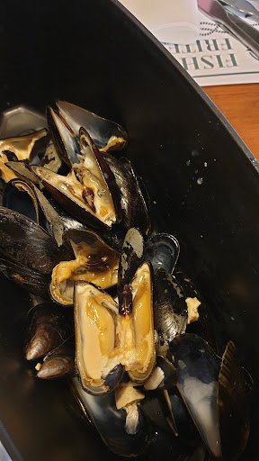 En 7 minutes les frites sont arrivées ! Surgelées mais rapide, elles sont arrivées avant les moules à l'eau... Celles-ci étaient exclues d'assaisonnement, c'est une honte de faire manger un plat aussi fadasse à des enfants, on s'étonnera après qu'ils préfèrent les nuggets ... Un bouquet garni et une pincée de sel vous coûteraient si cher ? Pour 8€50 ? Même McDo fait mieux pour 5€ ! Quelques minutes sont passées et je n'étais pas au bout de mes peines.... mon plat est enfin venu après qu'on m'ait demandé si je le voulait en même temps que mes enfants .... si eux doivent se rendre à l'école pour 13:15 ... Il semble qu'il faille que je les y emmène ! Logique