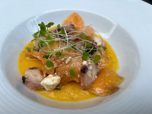 Read moreVery good, but with some but's! Booked in for dinner but only a table outside was available, limited seating inside so okay. Service was a bit 'stretched' but, again, okay. Had two different fantastic entrees, melon, octopus & feta and crab with lemon grass & green apple - really good! Mains were fish & beans - very good and steak & chips disappointing!! No options for how the steak was going to be cooked, however I was surprised, particularly in France, that it came well done! Very tough and not much flavour - not good!! Has potential but not sure if I...