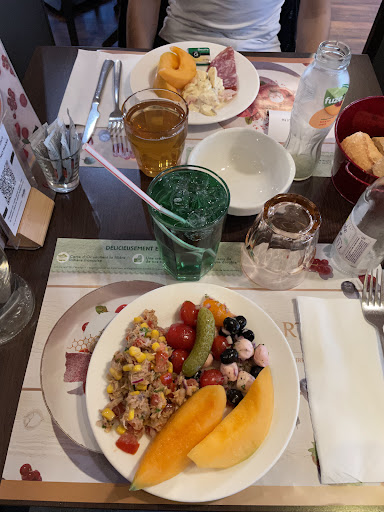 Read moreAh notre arrivée nous avons été pris en charge par une serveuse, nous proposant plusieurs table et laquelle serait a notre convenance. Nous avons ensuite pris un menu entrée, plat, dessert avec en entrée un buffet à volonté d’entrée, puis ensuite en plat un burger a l’ardoise avec frite et salade et pour finir en dessert une brioche façon pain perdu. J’avoue que je n’attendais pas beaucoup de se restaurant mais j’ai été agréablement surpris sur bon nombres de points ! Tout d’abord l’entrée à volonté était bonne ( peut être améliorer en quantité et un peu en qualité ) ensuite le burger qui j’avoue ne paye pas de mine, petit mais réellement et sincèrement EXCELLENT, vraiment. Les frites elles aussi sont très bonne tout comme la salade. Et finissons par le meilleur, le dessert avec la brioche façon pain perdu qui était juste incroyable ! Une des meilleures que je n’est jamais mangé !!