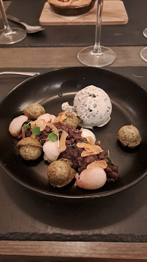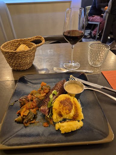 Read moreDéjeuner réservé pour 5 personnes, nous ne sommes que 4 malheureusement. La table ronde devant la porte, en plein courant d'air, nous est réservée, pas de possibilité de changer de table. Il est 12 heures, nous sommes les premières dans le restaurant. La patronne du restaurant, ainsi que 2 ou 3 serveurs/stagiaires sont là. Personne ne nous propose de nous débarrasser de nos manteaux, nous suspendons nos vêtements sur les cintres du vestiaire nous mêmes. Nous passons commande, et pour patienter, quelques petites tartines et mini pot de "rillettes" nous sont offertes. La patronne s'étonne de notre manque d'appétit sur les "rillettes"....je n'avais jamais vu de pot de gras de rillettes servi dans un restaurant !!!! Aucune excuse du restaurateur, j'ose espérer qu'un petit stagiaire avait préparé cet amuse-gueule sans savoir qu'il fallait enlever la couche de gras du pot avant de servir. Dommage pour ce restaurant, la qualité des plats est correcte mais l'accueil client...