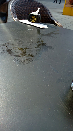 Read moreOn y est resté à peine 30min mais c'était suffisant. On attend bien 20minutes dans les 30 minutes ou nous sommes resté pour intercepter un serveur, heureusement sympa. Un jeune qui devait débuter. Nos cafés arrivent, 2€. Un ami présent avait une canette. Le serveur des cafés nous a rien dit sur le sujet. Mais un autre serveur aux cheveux long et avec une moustache nous parle extrêmement violemment sur le fait qu'il pouvait "dégager", je peux comprendre que les boissons extérieures ne sont pas acceptables, mais ce ton ne l'est en aucun cas de la part d'un serveur. Mon ami l'a finie rapidement et la jette plus loin il revient, et le serveur en question se ramène et lui dit "ah mais nan je m'en fous que tu les a jetté tu dégage" de manière très violente alors que de notre côté nous étions très calme et surtout dans l'incompréhension d'une telle violence. Si l'objectif était de nous faire honte c'est réussi, toute la clientèle s'est retournée. J'ai presque cru qu'il allait nous frapper vu son ton. De plus la table était sale, mais le pire c'est comme nous sommes repassé le soir sur la place du bar, une fois le bar fermé. La terrasse était dans un état deplorable, remplie de déchet de cloppe et emballage lutus des gâteaux des cafés. Un coup de balais pour des questions de pollution serait pas mal? En bref si vous chercher le calme et un endroit sympa éviter ce lieux vue les autres commentaires c'est...
