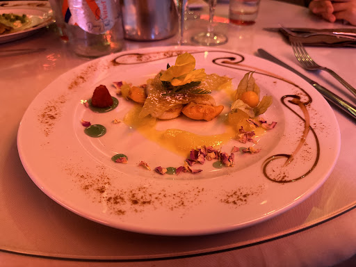 Wenn es so weitergegangen wäre, wären wir wahrscheinlich begeistert gewesen. Denn auch die Desserts überraschen positiv: Handwerklich sauber hergestellt, ganz nach unserm Geschmack. Doch das eigentliche Problem sind die Hauptgerichte: das Essen hat hier eher Kantinenqualität, von hoher französischer Kochschule kann nicht gesprochen werden. Es fehlt sowohl in der Darreichungsform als auch in der Zubereitung der Speisen an Finesse und Qualität. Keine der Speisen ist wirklich ausgewogen gewürzt, die Zutaten eher von fade und von durchschnittlicher Qualität.