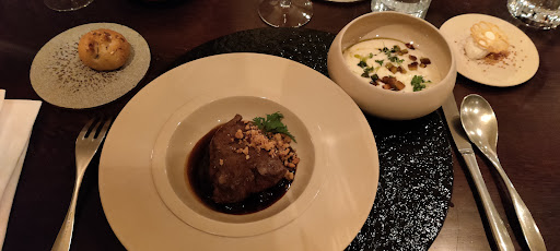 Read moreMon avis ne sera pas aussi dithyrambique que ceux déjà émis. Quant au cadre, je suis globalement d'accord sur le fait qu'il est sobre, reposant et simple. Il doit faire bon manger en terrasse (côté jardin) l'été. J'ai trouvé le service équilibré entre présence et discrétion mais toujours aimable et souriant. La cuisine, quant à elle, ne m'a pas convaincu. L'intérêt de cette adresse réside en ses plats originaux, non dans les classiques. Par exemple, les ravioles d'escargots étaient très bonnes mais j'ai mangé des magrets de canard bien bien meilleurs ailleurs. Il y a de la recherche, pas tout à fait aboutie mais sur la bonne voie. Je pense particulièrement à l'Arlette, composition originale un peu gâchée par la glace au nougat qui ne s'accordait pas au reste. Nous avons passé un bon moment mais celui-ci ne nous laissera pas un souvenir...