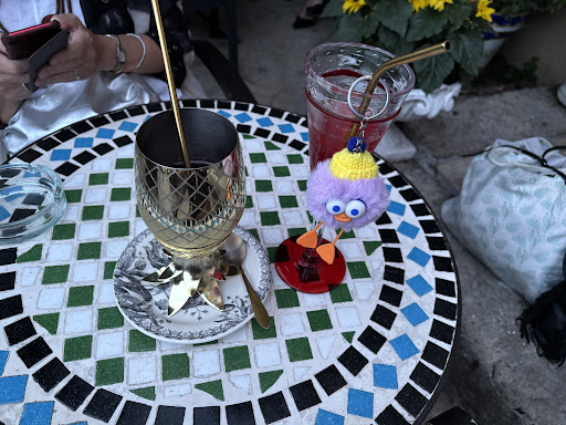 La décoration des lieux complètement surannée a de quoi dérouter, mais c'est essentiellement ce qui en fait le charme. L'endroit semble être resté "dans son jus" depuis... l'esprit ne remonte pas si loin. On s'imagine, dès l'entrée, pénétrer un espace particulier où le temps s'est arrêté. L'on s'attend à goûter au calme, à l'ambiance enveloppante, à se poser là, ne plus bouger et siroter en devisant gentiment. La carte des cocktails (classiques ou - peut-être - plus inspirés) est, à la lecture, assez large pour que l'on s'amuse à savoir qui va prendre quoi, dans l'optique de faire tourner les verres pour jouer à déguster, comparer, apprécier. Et c'est là que... scraaaaatch. Les cocktails choisis arrivent agrémentés de fleurs en plastique et autres décorations plumassières complètement inutiles. Ils sont accompagnés d'une coupelle de biscuits apéritifs sortis tout droit d'un paquet de supermarché alors que l'on pourrait s'attendre à quelques amuse-bouches façonnés maison. Passons. Tentons. Savourons. En fait, non. Peut-on sincèrement qualifier ce que l'on porte à ses lèvres de cocktails ?! Alors, oui, sans doute pour certains. De l'alcool, mesurément. Du sucre, en trop éminent complément. Du fruit, de temps en temps. Rien de bien balancé. Rien d'équilibré. Mention spéciale (mais négative) au Mojito qui, curieusement, ressemble à tout sauf à un Mojito. Finalement, arrive le moment de s'échapper (s'enfuir ?) de cette escale hors du temps. Y revenir ? Non. Le charme des lieux n'opère pas suffisamment. Cette première expérience ne pousse pas à en vivre une autre...