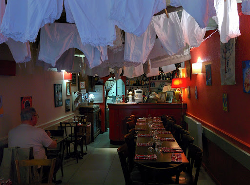 Il ristorante offre una cucina semplicistica (classico bistrot) a dei prezzi di 5€/7€ superiori alla media dei ristoranti similari. Al di là dei tempi di attesa molto lunghi (1h di circa per essere serviti), questo non sarebbe tanto grave se non fosse accompagnato da numerosi problemi che hanno reso la nostra serata disastrosa causati per lo più da una mancanza di rispetto della cameriera senza l’ombra di un sorriso e della proprietaria con evidenti problemi a gestire l’alcol (durante l’ora che siamo stati nel locale, l’abbiamo vista scolare l’intera bottiglia di vino anziché gestire la cucina e la puzza d’alcol quando parlavi con lei faceva abbastanza tristezza). Siamo arrivati “tardi” secondo gli standard dei francesi di questa zona (21h15) e abbiamo ordinato un menu. Il tempo di ordinare siamo rimasti soli nella sala interna, mentre i due tavoli esterni erano presi da persone della famiglia (la figlia e il ragazzo senza cibo e altri membri della famiglia). Quando gli abbiamo fatto notare che, per via dello stato di gravidanza della mia ragazza non poteva mangiare cibo affumicato, la cameriera ci ha guardato come se fossimo degli alieni, sostenendo che i medici sono tutti dei truffatori e che ci iniettano quintali di veleni con i vaccini e che, visto che lei ha mangiato salami e di tutto durante la gravidanza e i figli sono venuti bene, non c’era ragione per fare attenzione. Tesi sostenuta anche dalla proprietaria che diceva che, conoscendo i posti dove comprava il cibo, la mia compagna poteva mangiare tutto. I problemi maggiori arrivano dopo i primi piatti, quando, io e la mia compagna rimasti soli nel locale, la proprietaria decide di mettere nel tavolo accanto a noi delle casse con la musica anni ’80 a tutto volume. Il volume era così forte che io e la mia compagna non potevamo più parlare tra noi e il cane ha cominciato ad agitarsi per via dei bassi veramente eccessivi. In tutto, ho chiesto 4 volte che la musica venga abbassata, la risposta della proprietaria (sempre più ubriaca) è stata “qui si fa cosi, è casa mia e comando io, la musica va ascoltata forte, state zitti”. Ci siamo alzati senza nessuna volontà di continuare. Le persone vanno in un ristorante per passare un buon momento, parlare e mangiare dei buoni piatti. La proprietaria di questo ristorante non ha nessuna cultura, i suoi problemi alcolici e la volontà di trattare i clienti abituali con maggior rispetto ai turisti, porteranno ad un lento...