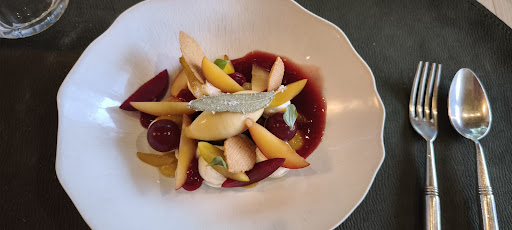 SĂ©jour en demi teinte et câest bien dommage car la gastronomie ,les saveurs Ă©taient au rendez-vous. Le jeune chef qui est venu nous rencontrer Ă la fin du repas et que nous avons fĂ©licitĂ© ainsi que sa jeune Ă©pouse qui nous a gentiment changĂ© une entrĂ©e commandĂ©e sur un malentendu ( ah, ces curcubitacĂ©es ! ) ont Ă©tĂ© charmants. Mais lâaccueil rĂ©servĂ© par la patronne des lieux nâĂ©tait pas Ă la hauteur de tout cela. Tout dâabord , lors de la rĂ©servation, le ton nâĂ©tait vraiment pas chaleureux. Dâautre part , nous avons connu une petite mĂ©saventure: Ă lâ apĂ©ritif , mon Ă©pouse a commandĂ© un jus de mĂ»re. Au moment de lâouverture ,sous lâeffet de la fermentation, celui-ci a jailli de toute part, Ă©claboussant la nappe,le fauteuil ,le sol et surtout le pantalon et le top de ma femme. Fort heureusement, elle nâavait pas optĂ© ce soir lĂ ,pour du lin ou du coton blanc et Ă©vitĂ© la catastrophe ! Elle sâest efforcĂ©e , tout en minimisant les choses et en gardant le sourire , face Ă la contrariĂ©tĂ© de la jeune serveuse ,dâeffacer les taches sur ses vĂȘtements avec une carafe dâeau. Elle a donc poursuivi le repas avec le pantalon tout mouillĂ©,une serviette sur la nappe et une suivante sur son fauteuilâŠ. Je pense que dans dâautre restaurant (mĂȘme en nâĂ©tant pas au Michelin )la nappe et le fauteuil aurait Ă©tĂ© changĂ© ! mais nous nâavons rien dit ! Seulement le lendemain au moment de partir , la patronne annonçait quâil restait deux apĂ©ritifs Ă rĂ©gler. Non seulement , elle nâa pas demandĂ© si lâincident avait eu des consĂ©quences pour les vĂȘtements mais elle rĂ©clamait le montant de lâapĂ©ritif qui nâavait pas Ă©tĂ© consommĂ© et pour cause ! CâĂ©tait pour le moins pas trĂšs dĂ©licat ! Je lui ai rĂ©glĂ© mon apĂ©ritif ( 17 âŹ) . Vu les dĂ©sagrĂ©ments de la veille , je pense quâelle aurait pu dâailleurs me lâoffrir comme geste commercial. Nous avions tout fait , je crois pour rester agrĂ©ables et souriants malgrĂ© notre mĂ©saventure.. Nous avons donc Ă©tĂ© un peu choquĂ©s par cette attitude dâautant plus que le matin , au petit-dĂ©jeuner elle nous avait,dâune maniĂšre un peu cavaliĂšre , voire militaire , contraint de prendre le petit dĂ©jeuner Ă lâextĂ©rieur et Ă 8h15, il ne faisait vraiment pas chaud . Le thermomĂštre sur la terrasse indiquait 10 degrĂ©s. En cette pĂ©riode de canicule , nous nâavions pas pris de pull et nous avons pris le petit dĂ©jeuner,au demeurant dĂ©licieux, avec pour moi une parka et pour mon Ă©pouse un plaid ,heureusement trouvĂ©s dans la voiture ! Cela a un peu gĂąchĂ© le plaisir⊠Au passage si le petit dĂ©jeuner est obligatoire Ă lâextĂ©rieur ,on peut sâattendre Ă trouver une terrasse nettoyĂ©e et une nappe. Pour ce qui est de lâhĂŽtel,notre fils a Ă©tĂ© déçu de dĂ©couvrir en photos les prestations de la suite. Il nous avait offert la plus belle et apparemment ce nâĂ©tait pas ce quâil avait prĂ©vu ! La chambre nâĂ©tait pas trĂšs chaleureuse ,la salle de bains un peu vieillotte , quant aux peignoirs , impossible de les enfiler tellement ils Ă©taient rĂȘches et raides. Il manquait Ă©galement une paire de chaussons qui a Ă©tĂ© fournie un peu tard , au moment oĂč nous allions dĂźner. Pour une chambre Ă ce tarif on peut sâattendre Ă mieux ! Notre nature profonde nous incite Ă ne garder que le meilleur: le sourire de ce jeune couple , le repas dĂ©licieux , cette daurade exquise et cette purĂ©e aux cĂšpes divine ( mĂȘme si jâai dĂ» attendre le deuxiĂšme plat pour que lâon me serve du vin đ) Nous nâaurions peut-ĂȘtre pas Ă©crit si nous nâavions pas Ă©tĂ© vraiment choquĂ©s par lâattitude dĂ©sinvolte au moment...