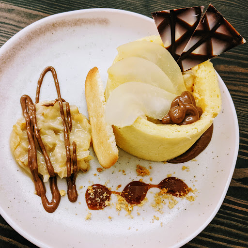 Lovely place and a nice surprise was that it was open and thriving on Sunday night ! Short menu which is always a good sign of home-made cooking. The plating was beautiful and the meat cooked to perfection, Service was fast, music was a really good mix, waiters were friendly... I just wish I had enough room left for the generous desert portions ! For example, here's a photo of the massive pear charlotte served in a génoise with caramel mousse, pear compote, salted caramel, more compote on the side drizzled in warm, cardamome-scented milk chocolate and topped off with poached pear, white chocolate triangles and a langue-de-chat biscuit for good measure... Oh and more chocolate 🥳 Book early, especially if you want to...