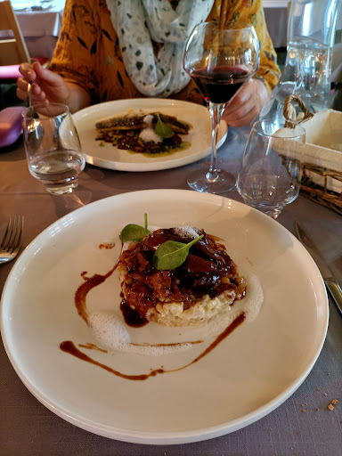 Très bon repas, plats très bien cuisinés de saison et raffinés. Seul bémol au niveau du service, les plats s'enchaînent très rapidement, on a du mal à souffler. Arrivés a 12h45, apéro, mise en bouche, entrée et plat servis en 45 min. C'est dommage, pour un dimanche, on aura voulu profiter. Trop précipité pour savourer ce moment de plaisir culinaire. Service peu gracieux, on nous apporte les plats mais sans un mot chaleureux. Mais le summum fut au moment de payer, quand la gérante me dit, "merci, c'est pour moi". Notre addition pour 2 personnes s'élève à 125€. Elle parlait du reliquat de notre bon cadeau, lui de 150€. En effet, notre note était inférieur au montant du bon de 25€. Au lieu de me proposer une compensation, une alternative pour ne pas décevoir le client, elle se braque à ma 1ère remarque. Je lui dis que j'avais repéré un menu un + honoreux sur leur site. Elle me répond que c'était à moi den faire la demande lors de ma réservation. Comment ça, il existe une carte virtuelle et une autre physique une fois arrivés au restaurant ? Je ne comprends pas cette réplique. Je suggère de trouver un compromis, mais elle me retrque que c'est Non. Je comprends qu'elle ne veille pas rendre de monnaie, ni même établir un nuvel avoir c'est clairement écrit sur le bon cadeau. Mais quand même, proposer un autre produit, une bouteille, un digestif, des produits maison a la vente sur place: terrine de pâté, confiture, miel... Quel dommage, pas d'humanité, de convivialité dans un métier tellement humain qu'est le commerce. Sûrement mal tombé ce jour là , mais on en gardera un souvenir très désagréable. Étant des locaux, on se chargera de faire remonter notre expérience autour de nous. Restaurant bon, mais gérants non commerçants et froid. Dommage... Pour connaître l'établissement depuis des années, on regrette...