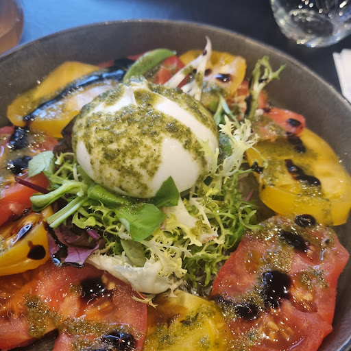 Cadre agréable. Les boissons italienne à base de thé sont originales et peu sucré, bonne découverte. Concernant la carte je l'ai trouvé assez simpliste, mais les plats présente bien, c'est plutôt bien dressé 👍🏻 Le serveur a fait ce qu'il pouvait, il était seul ce soir pas évident, on ferme les yeux sur les petites erreurs de sauces lors de la commande 🫣. Pour le goût, la grande salade burrata manquait d'assaisonement (sel, poivre,huile d'olive), je n'ai pas senti le pesto / basilic, sinon la burrata en elle même était bonne et gros +++ pour le pain maison chaud ! La balotine est original sans être transcendante, la pizza ressemble à n'importe quelle pizza d'un fast-food et le buger angus presque pareil, les frites aussi, en gros c'est sympa mais sa ne se démarque pas du tout du reste si ce n'est le dressage, le cadre et le personnel plutôt sympa.