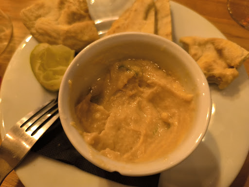 Read moreAvis très mitigé. Je m attendais a goûter au vu des avis quelque chose d'exceptionnel . Surtout ne pas prendre le houmous. Ça ne vaut absolument rien. La peau des pois chiche se fait sentir. On dirait une boîte de pois chiche mixé..ca n'a rien avoir avec un homous. Ne surtout pas prendre les falafel. Ça n'a rien avoir avec des falafel. Les pâtes étaient correctes surtout les petites tranches de lardons étaient très bonnes . Le vin ok pour le prix très correct. L'endroit un peu froid. Beaucoup de courant d'air. La serveuse fait de son mieux mais a tendance a répondre : ici tout est bon. Sauf qu'elle n'a pas tout goûté. L'intention est bonne mais beaucoup de choses à...