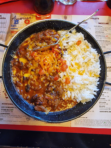 Read moreBonjour, En premier je tiens à préciser que la viande était particulièrement bonne, de qualité et très bien cuite! Par contre, nous sommes arrivés à 11h40, pas grand monde dans le restaurant, nous étions dans les premiers. Nous avons attendu 1 heure avant d'avoir notre premier plat. Des personnes arrivées après nous juste à côté ont eu le temps de manger et de prendre un café avant que l'on nous serve notre premier plat. Quand je demande gentillement si on ne nous a pas oublié, on me regarde de travers !!! Enfin... cela arrive et ... mon plat ne correspond pas du tout à ce que j'ai demandé, nouvelle attente interminable pendant que ma femme mange toute seule! On me sert enfin et surprise, c'est le bon plat (assiette du trappeur) mais qui ne correspond pas, ni à la photo, ni au descriptif (cf. photos en pièces jointes) je n'ai pas de maïs, pas de poivron, pas de sauce, mais surtout pas de brochette ! Je demande "gentillement" sans perdre patience (j'ai du mérite) où est ma brochette ? et là, même regard méprisant, ou plutôt regard blasé et pas du tout concerné, on me dit " vous l'avez votre bout de viande c'est la même chose" . AU SECOURS, je me fais presque "engeulé" de faire la remarque. On sent vraiment des gens motivés par leur boulot bien fait. Le client est roi? Je suis consterné ! RESTAURANT A EVITER ABSOLUMENT, c'est bien dommage car nous nous...