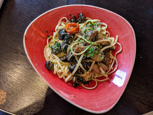 Read moreLovely interior. Just a little surprised that food came so quickly which made us think it was pre prepared. The salmon on the salad I had was hard due to it being so cold. I've had this dish several times in other restaurants and it was served either room temp or warm. Bread rolls were also quite hard. Dessert of lemony cheesecake was fine. When travelling one does get a bit jaded but it was ok kind of meal. Hubby would have preferred a choice of salad instead of spaghetti with his milanaise type escalope but it wasn't to be. Having a drink after our meal in the pub/restaurant two doors down with an old UK black cab outside , the food that passed by us did look rather. Good. Maybe a better...