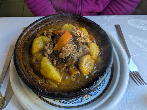 Went for Sunday evening dinner after Hotel recommend it. Nice Morrocan food and menu was in English. We ordered in our bad french- but managed just fine. However another customer made really loud jokes with the waiter about our 'bad french' and was really rude. It's a shame this kind of behaviour didn't die out with the dinosaurs but sad that non french speaking tourist's didn't seem...
