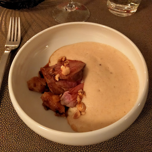 Mon ami avait donc le pantalon et sa chaise pleins d’eau et c’est levé, mais il ne serait même pas venu à l’idée à la patronne de prendre une chaise à côté pour un peu l’assister. Bref tu te débrouilles un peu seul. Je n’ai pas pour habitude de mettre des avis sur des restaurants ou autre, mais pour un étoilé et un menu à 102 euros, je m’attends à d’autres...