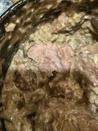 Quant aux plats, c’était une autre déception. La viande n’était pas cuite voir photo, et l’ensemble semblait plutôt pensé pour une clientèle âgée. À cela s’ajoutaient des frites complètement cramées et immangeables.
