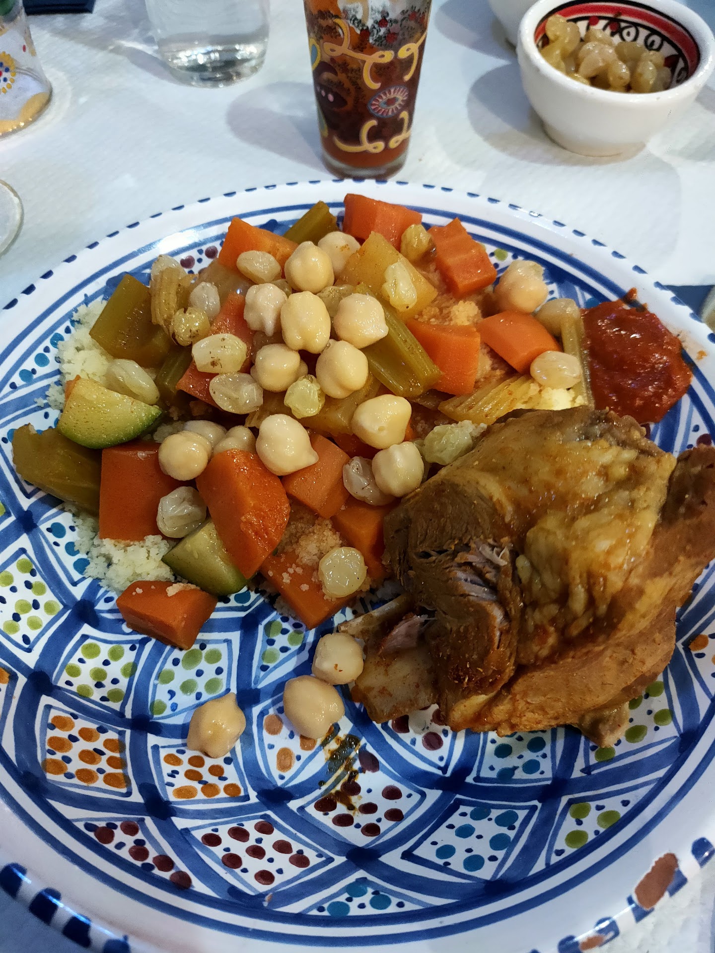 Read moreNous avons mangé un très bon couscous. La viande est tendre, la semoule fine était délicieuse, les légumes cuits à la perfection. De plus le jeune patron est souriant, il nous a trouvé une table tard le dimanche midi, la serveuse est très professionnelle. Le seul point négatif est le dessert, nous avons commandé des pâtisseries orientales, et les 6 mini gateaux étaient tous à base de pâte d'amande ce qui n'est pas vraiment représentatif de la patisserie marocaine et qui sont assez bourratifs. Il 'y a pas de corne de gazelle, pas de Makrout, pas de chebakia, etc ... Nous avons passé un bon...
