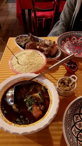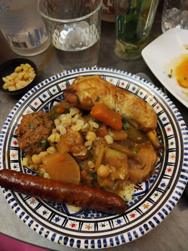 Restaurant plutôt moyen... La spécialité est le couscous (je ne suis pas fan de ce plat donc j'ai plutôt pris un steak haché avec des frites) et, je suis désolé sur ce que je vais marqué là, mais j'ai eu un désagrément. Je ne l'ai pas dit, je regrette mais j'allais pas m'afficher devant mes collègues, j'avais demandé mon steak haché avec une cuisson a point, elle était bien cuite. Mon collègue avait pris une entrecôte, il l'as voulu blue, il l'as eu saignante. Je veut bien que ça ne soit pas la spécialité mais il y a tout de même un gros effort à mettre sur cette aspect qualitatif... Ça nous a pas empêché de tout mangé, mais c'est tout de même un problème. Autre chose, j'ai pas trouvé le serveur souriant. Dès qu'un collègue lui sortait un sourire en lui disant rien de méchant, il ne réagissait point. Il pensait qu'à faire son travail. C'est fort regrettable. (Après tout, il était peut-être dans un mauvais jour. Ça peux arriver à tout le monde...) Sinon, je n'ai rien à reproché par rapport à l'ambiance intérieur. Le restaurant a le mérite d'être propre, c'est la principale chose qui pourrait donner ma satisfaction plutôt correct malgré les quelques désagréments que j'ai trouvé