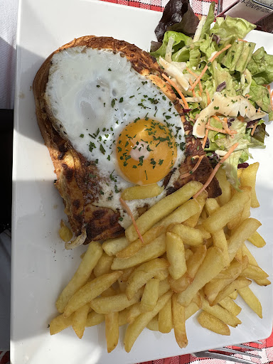 A charming brasserie with a terrace that extends into the alley, where we enjoyed a tranquil lunch. I ordered the Croque Madame, which came with fries and a salad. It was delicious and beautifully presented. The staff were very friendly, and the service was quick. A really nice place to enjoy your lunch on...