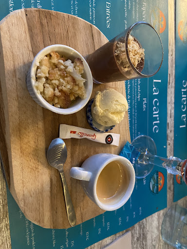 Read moreExpérience désagréable...proche de l'inadmissible. Serveur mal aimable : on le voit murmurer des "p**n" quand on lui demande quelque chose, haussement de sourcils, oublie de venir prendre la commande des desserts... Gérante trop pressée, peu agréable : pousse les enfants pour choisir les glaces, n'est pas du tout patiente et serviable. Vite vite vite. 20 min pour servir la commande des boissons, passe encore. Elles arrivent, manque les pailles à cocktail, obligés de réclamer au comptoir. Les cocktails sont servis sans glaçons donc avec la chaleur, en 5min c'était chaud. On a dû attendre d'avoir les plats pour avoir de l'eau ! Une carte restreinte pour la soirée animation, soit. Le minimum serait d'être efficace sur les plats proposés (planches tapas et pizzas !!!). Manque des ingrédients, client non-prévenu et aliment non-remplacé. Sans remise à la caisse évidemment. Des pizzas pleines de fromage râpé de mauvaise qualité, caoutchouteuses et peu savoureuses. L'environnement pourrait être sympa si une solution anti-guêpes était trouvée (moustiquaire le long des haies). Je passe sur les commentaires déplacés de certains vis à vis de leur collègue novice. Bref, une soirée décevante. Heureusement que l'animation d'un groupe de musique était...