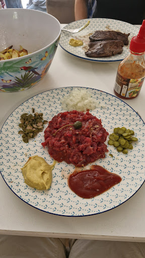 Read moreAprès avoir vu sur la carte "steak tartare haché au couteau" je me dis, super ! NON, steak tartare haché a la machine. Mais si seulement il y avait que ça, après tout nous étions en plein mois d'août compréhensible pour gagner du temps en cuisine, le problème est le suivant: Je demande donc à la serveuse si le steak est bien haché au couteau elle me répond que oui, je lui dis que NON mais gentillement en lui expliquant que ce n'est pas grave, (j'attendais juste un petit peux d'honnêteté !), elle me dit qu'elle va se renseigner, on revient me voir me disant que si c'est bien haché au couteau (je n'ai pas pris de photo malheureusement, mais nous pouvions voir les morceaux haché par la machine, et étalé pour camoufler celui-ci...). A la fin du repas Je réitères la question ce coup si à la cheffe du personnel je présume une dame au cheveux blonds, elle me réponds sèchement devant les autres serveuses: Si cest haché au couteau je connais bien les cuisiniers donc si je vous le dis cest que c'est vrai ! Nous repartons sans gestes commercials, sans excuses, sans gêne de leurs part comme si tout etait normal ! Je paye un steak tartare 16 euros pour 120 grammes pour quil soit haché a la machine cest inadmissible ! La prochaine fois soyez honnête ! Et ne prenez pas des gens pour des bleus ! Je vous envoie une photo de mon steak tartare fait de mes proprre mains une semaine après pour me venger de ne pas avoir manger un VRAI steak tartare, je tiens à dire que je ne suis pas cuisinier mais que le mien était littéralement 100x meilleur.