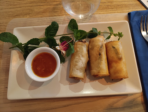 Lovely place, i like the floral design. I ordered nems, they were amazing and so was the bitter sweet sauce. The nasi goreng was good but lacking something but i used to eat it in Bali and it's probably hard here to find exactly the same ingredients and expect the same flavours. I had a glass of white wine and was really lovely. The only negative note is the service being super slow! It wasn't busy at all, maybe 4-5 tables, still took us one hour to get the food. I fear they won't survive the summer at this pace and it would be a pity because the people in there were really nice and food was good and well priced. I am definitely going back, hoping in a...