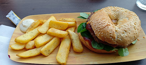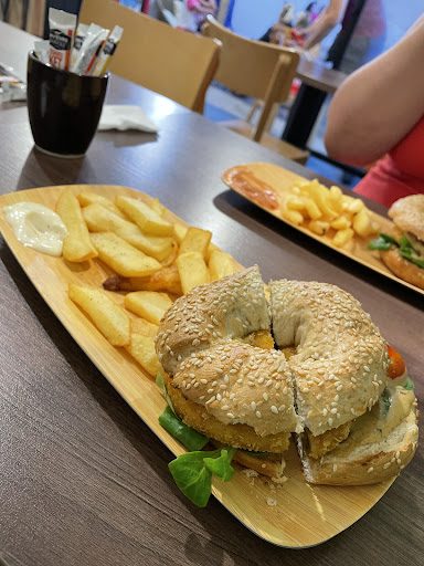 Read moreJ’étais sceptique à l’idée de manger des bagels, pendant qu’ils seraient servit froids… Et bien très très belle surprise! Dès bagels servit chauds, de très bonnes compositions proposées, toutes aussi alléchantes les unes que les autres! Le service est plus que parfait, un couple très serviable et avenants, au petits soins que ce soit pour les enfants ou les grands (enfants). Un sourire omniprésent tout le long du service, des personnes très solaires avec un bonheur immédiatement contagieux! Et le petit plus, les petits peuvent repartir avec leur sticker ainsi que laisser sa petite patte au restaurant! Je recommande vivement et ne souhaite que le meilleur à ce tout nouveau restaurant et ses propriétaires! J’espère revenir...