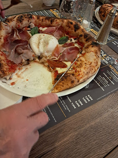 Nous somme allés une première fois manger une pizza dans l'hiver 2018, pas du tout déçus, personnel agréable, pâte cuite juste ce qu'il fallait ect.. Nous y retournons avec plaisir, je dépose ma femme pour qu'elle prenne une table le temps de me garer. On lui propose la pizza du moment, l'apéritif alors que je ne suis pas encore arrivé à table. C'est juste la base en restauration. Bref passons... Nos pizza arrivent, l'une bien après l'autre car ici le service se fait en 2 fois. Je n'ose pas imaginer comment ils font si ils ont une table de 15! le premier aurait fini ça pizza que le dernier serait tt juste servi. On nous donne une carafe d'eau chaude et pas d'huile pimenté. Il a fallu aller la chercher. On commence la dégustation et nous constatons que nos pizza sont détrempées. Quel dommage car la pâte et les ingrédients sont bons... Normalement quand on plie une part, tout les ingredients ne tombe pas. La pâte est souple, pliable mais cuite et pas molle en mode mouillée. En tout cas c'est ce que l'on m'as appris lors de mon école hôtelière et dans les différentes pizzeria que j ai put faire. Nous partons à l'encaissement et l'on répond à la question fatidique " ça c'est bien passé ??" nous donnons notre ressenti et là nous sommes devant une "serveuse", qui nous prend de haut, se permet de nous dire ouvertement et de façon cash que l'on n'y connaît rien. Limite arrogante dans ses propos elle nous explique que leur pizza sont parfaites en tant que pizza napolitaine, cuites à 600° et qui limite nous affiche à l'entrée du restaurant alors qu'on aurait pu simplement en discuter. Il faudrait expliquer à cette demoiselle que si elle ne veut pas entendre les remarques des clients bha faut pas poser de questions à la fin du repas ou bien être restaurateur en général. Ce que mademoiselle ne sait pas également c'est qu'il faut éviter de dire aux gens qu'ils n'y connaissent rien quand on n'y connaît rien soit même. Il se trouve pour sa gouverne que je suis cuisinier, italien de naissance de San cipriano d'aversa près de Naples justement. ( d'où ma motivation à venir chez eux qui proposait un produit " qualitatif" de mon pays. Et donc pour finir je maintien que la cuisson d'une pizza c'est 3/400 °dès le départ pr saisir la pâte et séché les aliments au préalable pour éviter l'eau qui détrempe.. Mais c'est vrai que j'y connais rien.. Dommage on aimait...