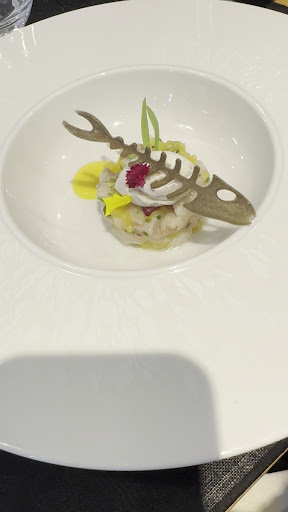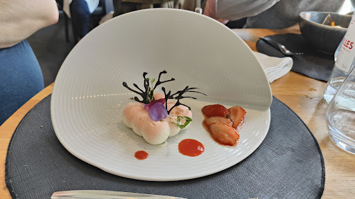 Read moreRelativement déçu car reparti avec une légère faim malgré un déjeuner en quatre services avec le fromage. Les quantités sont très inégales d'un plat à l'autre : double entre le cannelloni et la raviole, triple entre le merlu et la canette (deux petites bouchées pour un plat principal, c'est insuffisant) Manque de goût globalement dans les plats : Le yusu dans la mayonnaise de l'entrée n'était pas notable et la sauce Tonka du dessert manquait de nuances. Le dessert était fade et très peu gourmand pour des profiteroles. Faute de service ou consignes trop restrictives ? 1/4 d'un morceau de fromage remis dans le plateau après avoir été mis dans l'assiette ! Du jamais vu... Idem sur les quantités, 4 petits morceaux dont un moins grand qu'un ongle... Le service était de qualité avec des serveuses attentionnées. Flambage minute pour le dessert aux fraises mais pour seulement 4 tranches de fraises. Décalage entre la perception d'un certain standing et d'être restreint sur un minimum de quantité pour se rassasier. Dommage. Les + : mises en bouche et amabilité des serveurs. De beaux visuels dans les assiettes. Les - : trop peu en quantité pour le positionnement tarifaire. Assainissements et goûts pas...