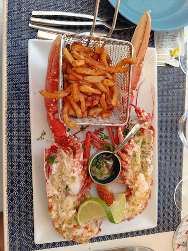 Clams and chicken Half portion of fish and chips Prawns and lobster in Asian sauce- only comment here was prawns still had poop trap, so was a little messy but delish none the less!