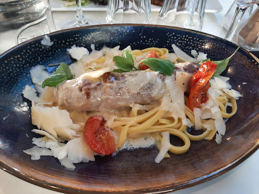 We saw how popular this restaurant was so booked a table for the following evening. They have the most uncomfortable chairs I have ever sat on. As my husband had recently had a lower back operation I asked if we could move to a more comfortable table. The woman who appeared to be in charge was very rude and just said "reserved" whilst I was still speaking but was incredibly flirtatious with a single gentleman near us. However a waiter came over afterwards and moved us to another table where my husband had a comfortable seat. The food was OK, we shared Insalata to start which contained far too much lettuce and not enough variety of ingredients. We both chose risotto with scallops which were good. A bottle of Chianti was the star of the evening. I would not return unless they change...