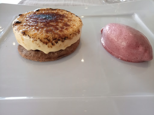 Read moreLe service est parfait. Le serveur est agréable et discret. À deux pas du port. Les gestes barrières sont respectés. Bon rapport qualité-prix. Les pois-gourmands sont légèrement trop cuits mais bon quand même 🙂 Je ne publie que la photo du dessert parce que j'avais trop faim pour prendre le temps de photographier le reste^^ Le dessert est surprenant : Tarte fromage blanc. Elle est présentée sous forme de crème brûlée sur une confiture de fruits rouges. La pâte est en dessous. Accompagnée d'une glace sur un...