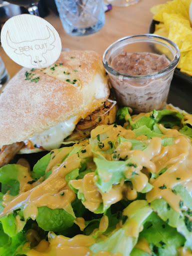 Read moreMalheureusement nous avons Ă©tĂ© trĂšs déçus lors de notre venue ce jeudi 8 aoĂ»t 2024 midi. FeuilletĂ© en entrĂ©e pas chaud, wrap humide (fait Ă l'avance, le wrap se ramolli...), pomme de terre au four sur rĂ©chauffĂ©e (cf photo), guacamole tout droit venu de l'hypermarchĂ© (j'ai une recette mĂ©ga simple et rapide bien meilleure si vous voulez !) Je prĂ©cise Ă ceux qui voudraient venir qu'ils ne proposent pas de frites en accompagnement (ça, en soit, ce n'est pas un souci). Temps d'attente relativement long. 1h entre notre arrivĂ©e et les premiers plats servis. Nous avons reçu la carafe d'eau Ă la fin du repas. En revanche, suite Ă la remarque de mon pĂšre sur la qualitĂ© de son assiette (saucisses pommes au four), le jeune serveur a bien rĂ©agit et correctement rĂ©pondu. Un cafĂ© a Ă©tĂ© offert. Un. Nous Ă©tions 4 adultes. MalgrĂ© tout, nous n'aimons pas le gaspillage alimentaire, alors nous avons tout de mĂȘme fini nos assiettes. Pour ma part le burger au cochon Ă©tait trĂšs bon, tout comme la sauce aux Ă©chalotes. Ainsi que le Pinot noir Patte de chat. MalgrĂ© ces derniers bon points, nous ne comptons...