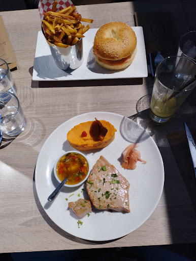 La période du 14 juillet est difficile pour l'hôtellerie. Sachant qu'on a réservé à 21h, on peut admettre qu'il y ait 30 min d'attente, mais ce que l'on peut reprocher c'est le fait qu'ils te mettent sur une table "d'attente" à patienter mais pendant ce temps, ils font rentrer des personnes n'ayant pas réservé !! C'est un peu énervant. On a réussi enfin à être à table à 22h10 mais ils ont tardés à prendre la commande, on ne savait pas quel serveur était attribué à notre table, personne réagissait. Ils ont oublié de mettre un cuillère pour le dessert, j'ai demandé à une serveuse qui passait, elle m'a dit qu'elle allait en chercher une, au bout de 10 min, toujours rien et au final elle n'est jamais venue !!! Allez au restaurant est un moment assez sympathique et cela nous a miné notre soirée ! Concernant la carte, ils renouvellent un peu mais trop peu à notre goût. A aucun moment nous avons eu une attention particulière pour avoir attendu 1 heure, ni un apéritif offert. Cela nous a pas empêché de laisser 5€ de pourboire car c'était un weekend difficile pour eux mais il ne faut pas confondre les gens qui ont eu la gentillesse de réserver avec ceux qui arrivent, pour combler les tables du service. On a vu des gens rentrer, sans avoir réserver, sans attendre, en s'asseyant directement à table et ont été servi avant nous !! C'est pour cela qu'être mis sur la table de côté en arrivant, ce n'est peut être pas le bon choix pour le client qui attend et peu toujours attendre s'il n'a pas la conscience de regarder ce qu'il se passe et que enfin une table lui soit attribuer. Cela reste un restaurant convivial où il est agréable de venir par rapport à cette décoration sympathique et la fraicheur des mets. LE CLIENT DOIT ETRE RESPECTÉ SURTOUT QUAND...
