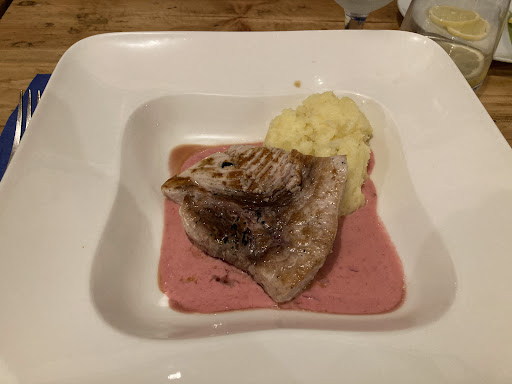 Read moreLe restaurant était très mignon, la playlist en fond sonore de qualité, mais malheureusement je n'ai pas apprécié le reste. L'attente pour avoir les cartes était beaucoup trop longue, nous n'avons même pas eu une commande en avance pour les boissons. La serveuse avait beau nous dire que sa collègue allait venir, je pense qu'ils étaient débordés et qu'ils n'ont pas sû nous servir correctement. J'ai commandé un des plats les plus chers (des gambas), et j'ai été très déçu. Le riz était beaucoup trop cuit, et plein d'eau. Les légumes n'était pas assaisonnés et gorgé d'eau également. Les gambas étaient bonnes, mais trempées dans une sauce qui n'en était pas vraiment une mais plutôt de la crème aromatisée. Quand aux oignons promis, je n'en ai pas vu un seul dans mon assiette. Mon père avait pris un steak d'espadon, bon mais sans plus. Ma mère avait pris les moules, qui furent bonne mais trop peu présente dans l'assiette. Les desserts furent servi plus vite que le reste, et furent bons. En leur parlant de la déception de mon plat, j'ai eu le droit à une tisane offerte, ce qui fut très gentil de leur part tout de même. Peut-être suis-je tombée sur un mauvais jour ? Je reste dubitative sur le rapport qualité/prix...