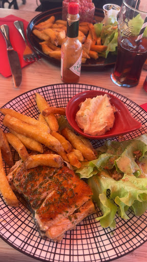 Nous avons commandé un tartare de bœuf, un saumon à la plancha, et une crêpe jambon-fromage pour enfant. À l’arrivée des plats, la déception a été au rendez-vous : très peu de frites, une feuille de salade un peu triste, un morceau de saumon sec, sans saveur – probablement surgelé ? – et une sauce aïoli glacée. Le tartare n’était guère plus convaincant, et la crêpe enfantine manquait clairement de moelleux.
