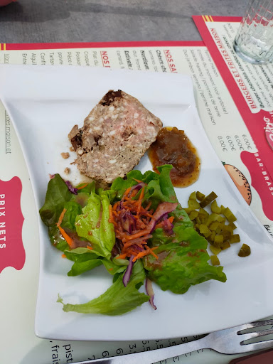 Il y avait une grande carte dehors très appétissante, on rentre et on nous demande de choisir immédiatement entre deux burgers et une brochette ... On nous installe a une table pas débarrassée alors qu'il n'y avait personne dans le restaurant (à part nous) et la gérante nous dit "qu'elle n'a pas eu le temps de débarrasser" ... Alors qu'elle n'avait rien d'autre à faire. La gérante fume sa cigarette électronique à l'intérieur du resto et chante (faux) pendant tout le repas. La gérante et le serveur mangent en même temps que nous, derrière leur bar, en nous tournant le dos. Le chef crie "Ça c'est pour les deux filles là-bas !" avant d'envoyer nos plats ... Je demande un burger sans salade, ça arrive ... avec salade ! On lève la main pour demander de l'eau, le serveur nous ignore à plusieurs reprises, ce qui nous oblige à aller nous-même au bar (où ils sont en train de manger les restes). La gérante soupire sans arrêt et nous fait bien comprendre que ça l'emmerde qu'on soit là. Pour couronner le tout, la gérante demande au serveur de nous débarrasser alors qu'on a même pas fini de manger.
