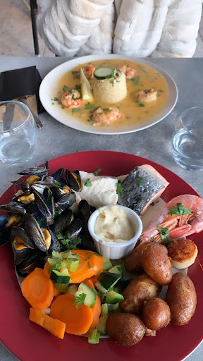 Hier soir pour la dernière soirée de nos vacances avec mon conjoint et mon neveu, nous avons choisi ce restaurant en bord de mer. Le cadre est vraiment très agréable, mais c'est hélas le seul intérêt de cet établissement. A la commande du plat du jour, annoncé accompagné de légumes de saison, on nous indique qu'il n'y en n'a plus, que c'est servi avec des pommes de terres grenaille, même en demandant en cuisine il n'y a pas d'autres accompagnement possible.... dommage quand on cherche à manger autre chose que des féculents....je demande de la salade à la place des pommes de terres. A la commande de la bouteille de vin blanc, celle retenue est en rupture "victime de son succès" d'après la patronne.... A l'arrivée de la petite planche charcuterie fromage, pas de fromage, après un aller retour en cuisine, des cubes d'emmental sont apparus !!! Clou du spectacle, la parillada de poisson : je n'ai pas eu le réflexe de prendre une photo, il y avait des pommes de terre alors qu'elles devaient être remplacées par de la salade, l'unique Noix de Saint-Jacques n'était pas plus grande qu'une pièce de 5 centimes, un morceau de caoutchouc, le filet de saumon pas du tout cuit au centre, le poisson blanc hyper sec, trop écoeurée pour goûter la gambas, tout le plat semblait sortir du congélateur. Les 2 autres plats étaient corrects. Nous nous en sommes tenus là, et le seul geste commercial a été de nous proposer un café et 2...