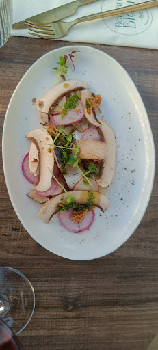 Read moreDéçu. Accueil zéro, nul. Désagréable au maximum. Cependant la carte des menus à l entrée très attirante. Des menus alléchants, suggestifs qui inspirent l appétit, le goût. La porte de toilette qui ne ferme pas. 34 degrés, nous avions un chien, même pas proposé une gamelle d eau. A l'apéritif des olives curry...basique.. sans plus il faudrait aimer le curry..Les mets pas de saveur très fade, mini quantité. L huître pochée normoutier mousse de pomme de terre condiments échalote et salicorne heureusement que la salicorne a relevée le goût du palais autrement pas de goût une seule huître qui est passée inaperçue j ai vu un trait de rouge j ai pensée que c était de la betterave rouge, mais non! Tres déçue. Les moules sans plus déjà mangées mieux sur île. L attente trop longue. Ils ont mis 45 mn entre l apéritif et l entrée. Ils m ont déposé une cuillère pour l entrée après cela il a fallu attendre 30 mn avant que l entrée n'arrive. Mon chien était impatient heureusement qu il n a pas aboyé.Je pensais après la dépose de la cuillère cela allait suivre, non! En tout nous avons dû attendre 1h40 pour un repas sans dessert et café. Prix cher pour la quantité et le goût...