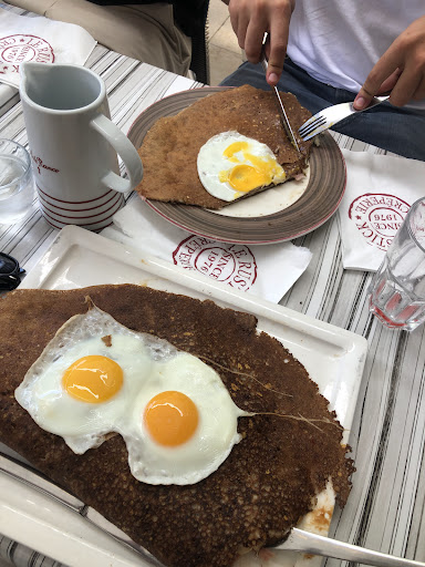 Grand choix de galettes classiques et gourmandes , une carte épuré et originale, le choix est dur car toutes les galettes ont l'air toutes aussi bonnes que les autres. Les serveuses sont agréables et savent vous conseiller. Le cadre est chaleureux et avec du charme. Un rappel a la plage qui se trouve a une quinzaine de mètres y est présent. Le restaurant ainsi que son accueil n'ont pas changé depuis ma dernière venue (2009). Assis , on se croirait au bord de la plage et ajoutons a cela , un beau ciel bleu ensoleillé, c est un vrai bonheur. Belle présentation de l assiette , ca donne envie, mais c est tellement beau a la présentation que je n ai pas envie d y toucher pour pas l abimer. La preuve est la , l assiette est vide, un pur regal , la galette Nordick est d une fraicheur et d une finesse comme jamais vue .Le saumon n est pas trop salé comme le commerce et c est bon signe. La crème basilic est très agréable en bouche , je n ai jamais mangé une galette aussi gourmande et raffinée de toute ma vie . La vendéenne est copieuse, on a l impression de manger une flammekueche # tarte alsacienne a base de crème, de lardons et d oignons , les produits sont frais et locals . Un doute sur La Chantilly et le caramel sur le fait que ce soit industrielle . En soit , tout est parfait , le dessert fait douter. Après confirmation, la dame de l accueil nous a explique la préparation de la chantilly et du caramel qui paraissaient industriels, nous avons maintenant la preuve que tout est fait maison.
