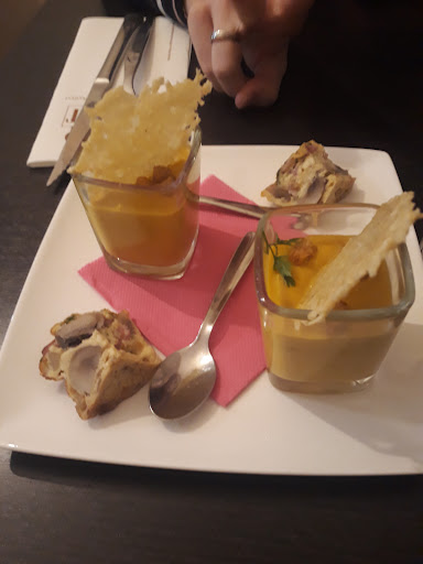 Read moreAccueil et service très bien, nous étions venu à deux, la table était très bien dans le coin pour l'intimité. Petite mise en bouche très bien, en entrée tourte volaille sauce fumé, rien à dire. St Jacques rôties sauce nantaise, légumes racine, également rien à dire, très bon et bien travaillé, bon accord avec le panais. Mais 1 étoile de moins pour le dessert qui est bien trop lourd, les deux assiettes précédentes étaient très light mais l'entremet chocolat croustillant crème anglaise reste vraiment bien sur l'estomac ce qui fut dommage, un dessert fruité aurais été "peut être" plus adapté aux menu. Ce qui est également appréciable c'est le menu qui varit selon le marché, les produits sont frais. Les assiettes sont bien présentées. C'est...
