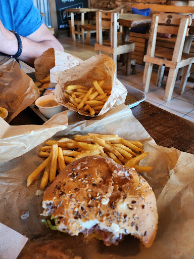Read moreUn emplacement stratégique près de camping et de centre commercial le restaurent présente une décoration ou le bois est très présent ce qui accentue le côté chaleureux du restaurant, le fait d'avoir une cuisine qui est ouverte nous permet de suivre nos commandes. Le point négative est que la carte n'est pas complètement compréhensible au niveau des buguers avec les sauces. Le restaurant n'est pas accessible aux personnes qui ne parle pas français. Le fait que le restaurant servent les mets dans un plateau fait resortir le côté industriel de la cuisine, Malgré le service à table... En ce qui concerne ce que j'ai pris le buguer était à 7€50 et malheureusement je trouve que cela ne vaut pas le coup... le steak haché était trop cuit et était devenue élastique avec beaucoup beaucoup d'huile. Il était indiqué sur la carte qu'il y avait de l'emmental dans le buguer malheureusement je n'ai pas sentit le goût du fromage. Bilan restaurant o kontoir Le restaurant à encore pas mal de points à rattraper c'est donc poir cela que je ne le recommande pas pour moment familiale mais plutôt pour un moment entre amis je penses que le fait d'ajouter des assiettes et des verres sur chaque table vas considérablement augmenter la notoriété du restaurant en ce qui concerne la qualité je pense qu'il faudrait dans un 1er temps juste passer à la gamme au-dessus et cela devrais passé j'encourage le restaurant à persévérer et de fournir encore...