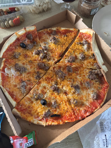 Read moreVente de pizza à emporter, possibilité de passer sa commande par téléphone ou de se déplacer pour commander. Brochures à disposition sur le comptoir, ce même qui est équipé d'un plexiglas et d'un gel pour mains mit à disposition. Des gérants 'acceuillants, les pizzas sont préparée devant nous. La pâte est fine se qui est juste comme il faut et croustillante quand nous la mangeons les produits sont frais . Parking juste devant...