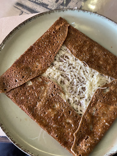 Galettes trop cuites , je dirais même "crasses", plus un arrière-goût de brulé que de pate à crêpes. La qualité bretonne n'était PAS DU TOUT au rendez-vous, et c'est pourtant cela que les clients veulent trouver ou retrouver , ils ont envie de voyager en Bretagne et non dans un bouiboui.
