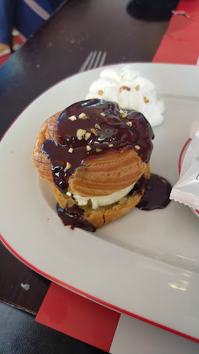 Deux étoiles pour les serveuses. Je me serais cru dans l'émission "cauchemar en cuisine" de Philippe Etchebest. 28 degrés dehors à 20h15 et la terrasse non ouverte car il n'y a que deux serveuses pour assurer la prise de commande et le service avec une salle quasi pleine. Autant dire qu'elles couraient partout les pauvres, je leur tire mon chapeau. La responsable derrière le bar à brassé trois verres et des cafés, qui n'a pas dénié bouger pour aider ses serveuses. Environ 40mn d'attente et trois cacahouètes plus tard le plat principal arrive, enfin...un steak ( cuisson parfaite) mais les frites....immangeable, un goût horrible et une sauce au poivre industrielle. Pas de dessert car rien n'est fait maison, donc petit fromage, c'est une valeur sûr. Bref, une étoile pour les serveuses et une étoile pour le geste commercial du à l'échec cuisant des fameuses frites. Déçu, nous ne...