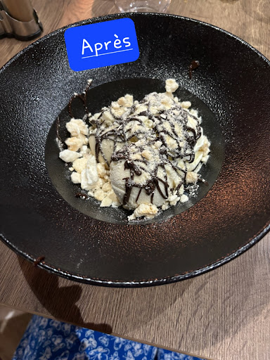 le dessert pareil la recette est bonne le biscuit était trop dur on ne pouvait pas du tout le casser Constater par le serveur qui nous à dit que en effet d'habitude il n'est pas si dur