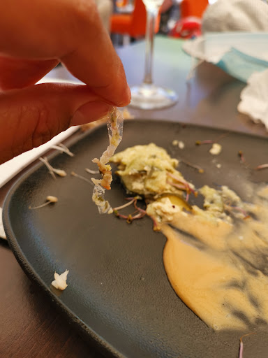 Nos entrées arrivent, (fois gras pour moi) dans lequel je retrouve du plastique. (emballage industriel dû fois gras) autre entrée rien à dire.