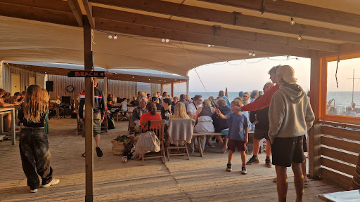 Wonderful location with local surfers lodging and the life guards next door. The menu offers a small selection of very well prepared honest food, like fish and chips with a very well done thin crust, or a very generous entrecôte prepared at your desire’s redness. It’s prudent to reserve if you want to have generous shade during lunch. At night the sun umbrellas are taken down and the eyes go the sunset. The tables fill up and the mood goes up to as the playlist on the speaker offers sun-related songs (“don’t let the sun go down on me”), until finally the sun sets and applause awards yet another sunset delivered to the audience. Very friendly staff and not-too expensive pricing, albeit more expensive than you could expect - then again, it’s very well prepared and good value for money on location and food and just how cosy...